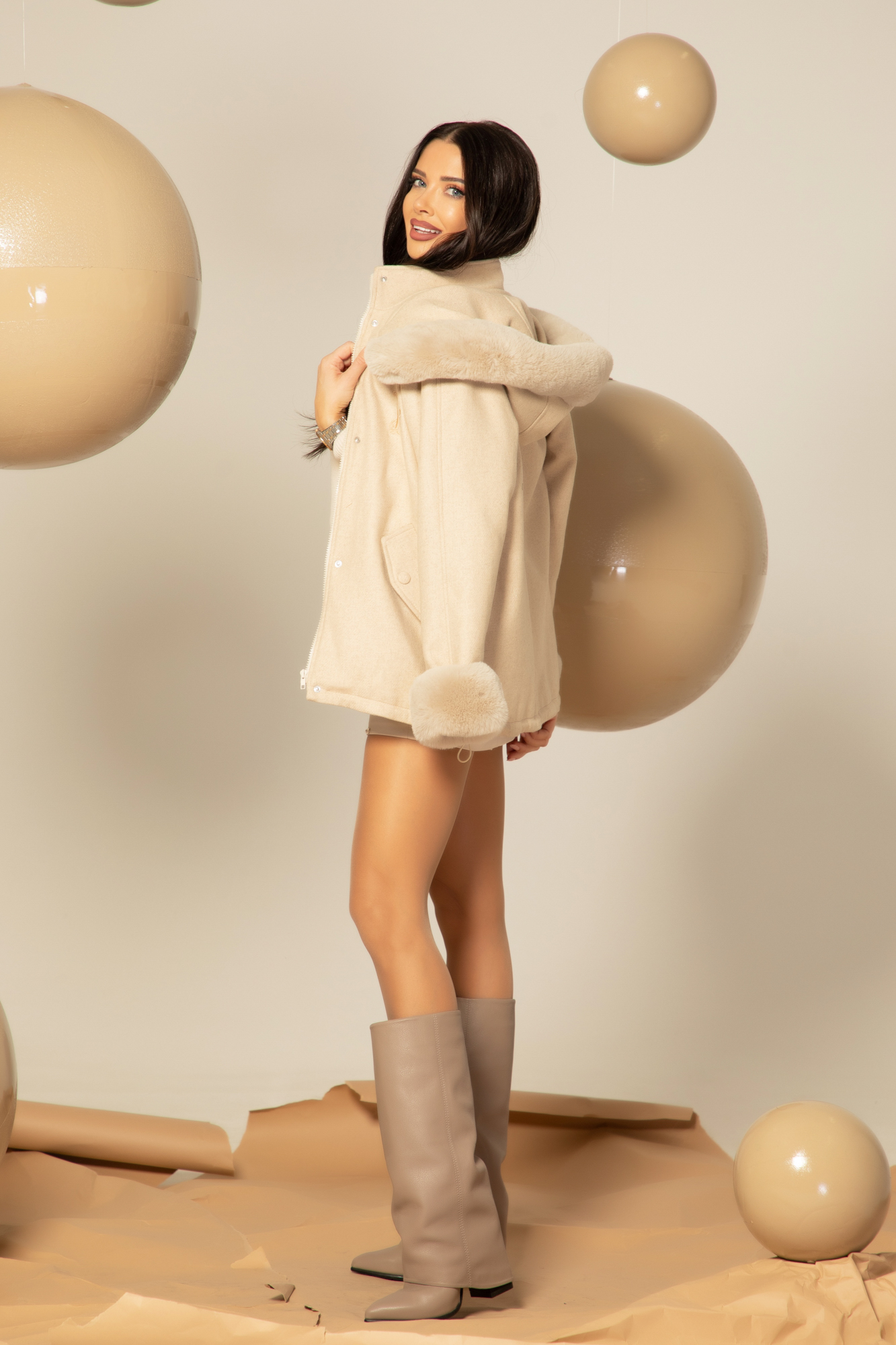 Winter Pulse Зимно Палто - Бомбър От Кашмир - Soft Beige - Изображение 76 До живот размисъл