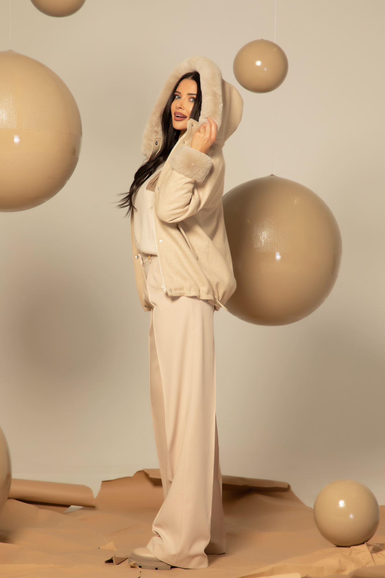 Winter Pulse Зимно Палто - Бомбър От Кашмир - Soft Beige - Изображение 77 По-красиви на живо
