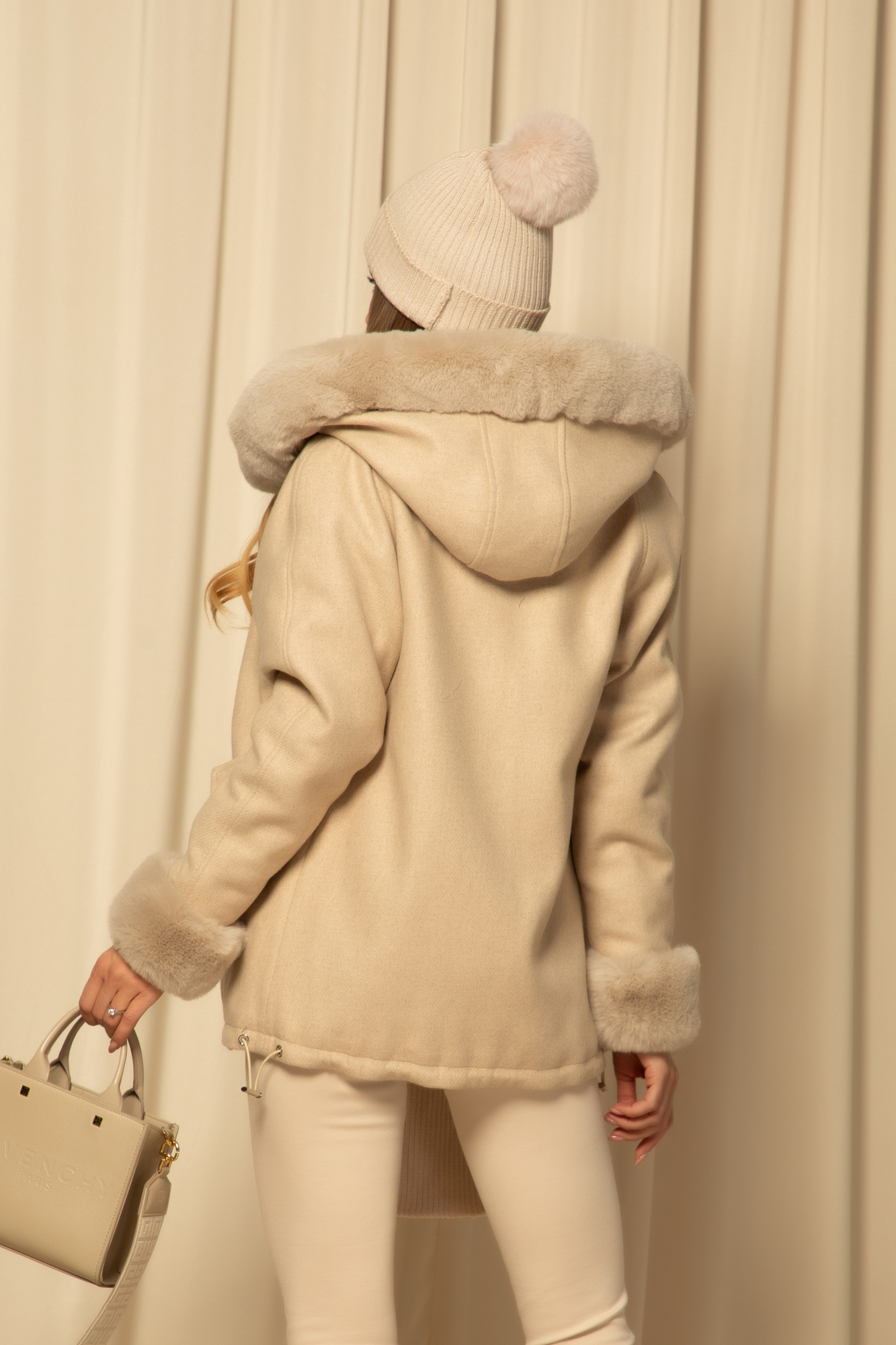 • Материя: еко кашмир (вълна, полиестер), капитониран хастар (вата. полиестер), каракул, еко косъм
